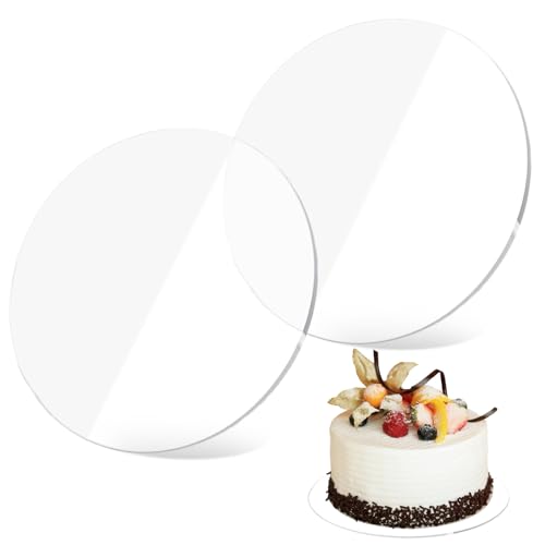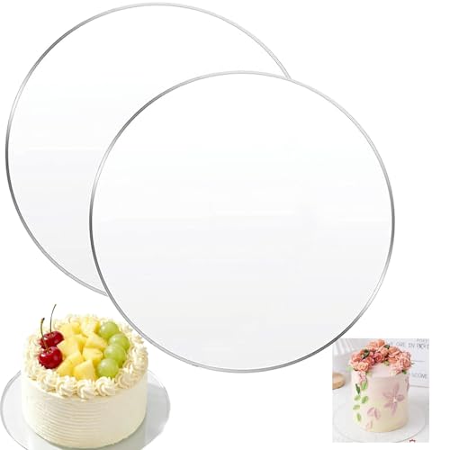 Cake Board 20cm,Support gateau rond 2pièces, Plateau gâteau acrylique, Plateau Gateau Rond Réutilisables,Disque Gateau patisserie ,3mm Epaisseur Planches à Gâteau,pour Mariage, Anniversaire Fête et