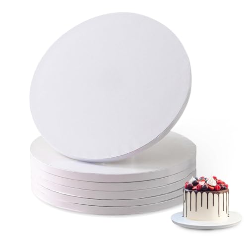 Yimomoyi 5 Pièces Plateau à Gâteau Rond, Cake Board 25cm/10 Pouces, Réutilisable Support Gâteau Carton 12 mm de diamètre, Blanc Plateaux à Gâteau Ronds, pour Mariage, Anniversaire, Fête