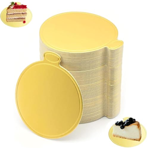 Heyumybit 100 PCS Supports à Gâteau en Carton,9cm Planches à Gâteaux,Plateau Gateau Carton Rond pour Base de Gâteau,Mini Plaques à Gâteaux Rondes Dorées,Convient pour Mariage,Anniversaire,Dessert