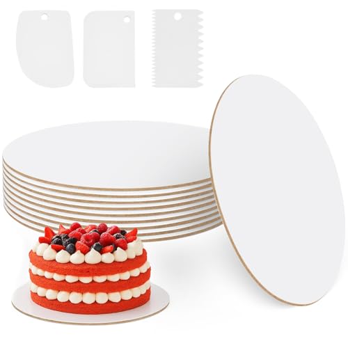 L&W Luck 10 Pièces Cake Board, Plateau Gâteau Rond 30cm d'Épaisseur Avec Racloir pour Présentation de Gâteaux, Tartes & Pâtisseries (Style 1)