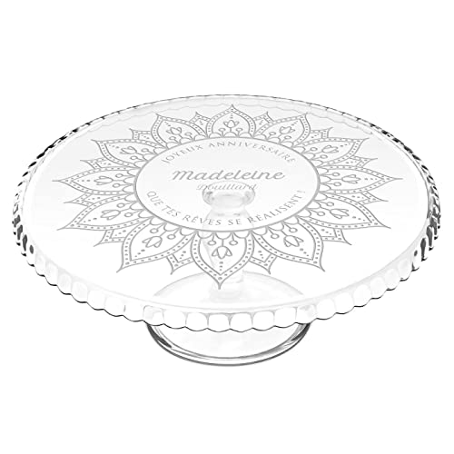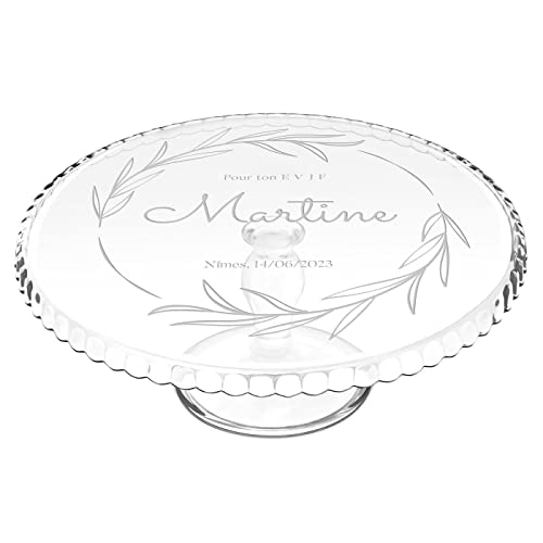 Maverton Plateau à gâteau Rond - Plat sur Pied avec Gravure pour Elle - Présentoir gâteau personnalisé - pour Femmes - Souvenir pour Anniversaire - Assiette décorative - EVJF