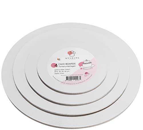 Wenburg Premium Cake Board Set | Support Gateau Rond | 3mm, Doré & Argent | Utilisable des Deux Côtés | Plateau Gateau Rond en Carton | Plateau à Gâteau | Lot de 4