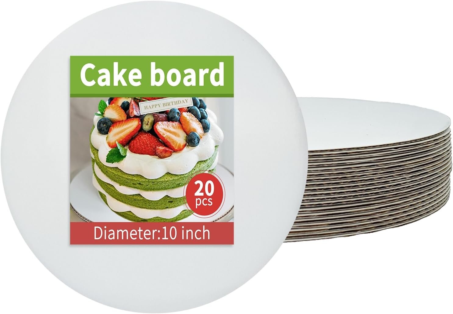 Lot de 10 Cake Board de 20 cm, Support Gateau Rond en Carton Robuste, Plateau Gateau Rond Polyvalent pour gâteaux et Desserts, Parfait comme Fond de gâteau pour Mariage, Anniversaire et fête.
