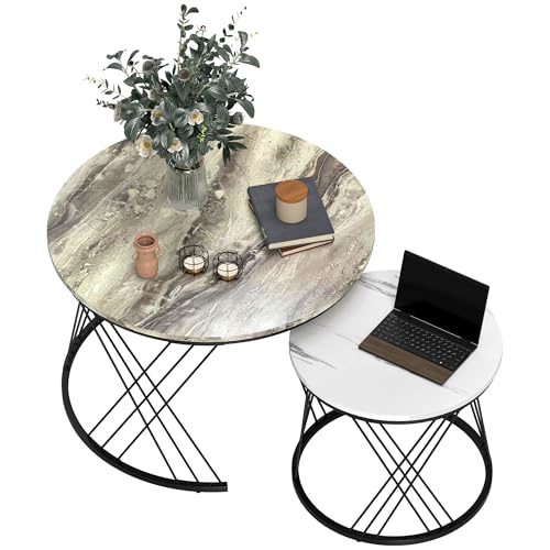 Macabane Table basse ronde Blanc 50x50cm plateau effet marbre piètement métal DALY
