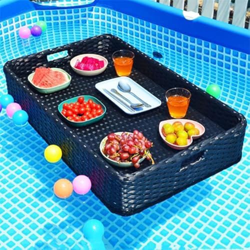TAHALI Plateau Flottant Piscine Rotin, Flottant Rotin, Piscine Plateaux Flottants dans La Piscine pour Servir des Boissons, Un Brunch Et De La Nourriture sur l'eau,80 * 80 * 20-Black