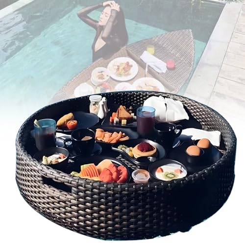 TAHALI Plateau Flottant Piscine Rotin, Flottant Rotin, Piscine Plateaux Flottants dans La Piscine pour Servir des Boissons, Un Brunch Et De La Nourriture sur l'eau,60 * 60 * 20-Black
