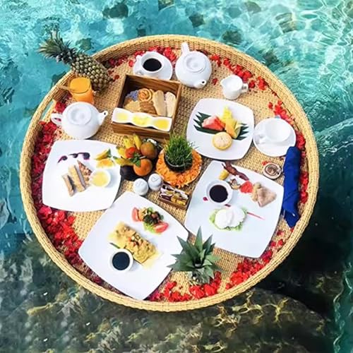 Plateau de service en rotin tissé pour piscine – Plateau flottant pour les fêtes et brunch, idéal pour les bancs de sable et les réunions en plein air