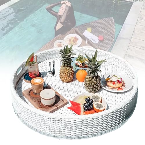 TAHALI Plateau Flottant Piscine Rotin, Flottant Rotin, Piscine Plateaux Flottants dans La Piscine pour Servir des Boissons, Un Brunch Et De La Nourriture sur l'eau,80 * 80 * 20-White