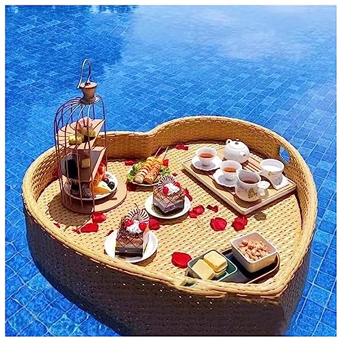 TAHALI Plateau Flottant Piscine Rotin, Flottant Rotin, Piscine Plateaux Flottants dans La Piscine pour Servir des Boissons, Un Brunch Et De La Nourriture sur l'eau,60 * 60 * 20-Apricot
