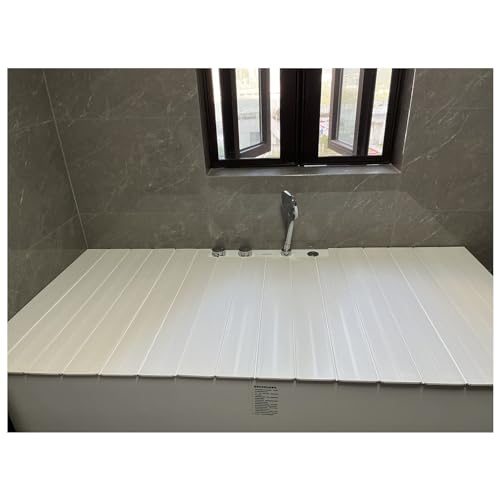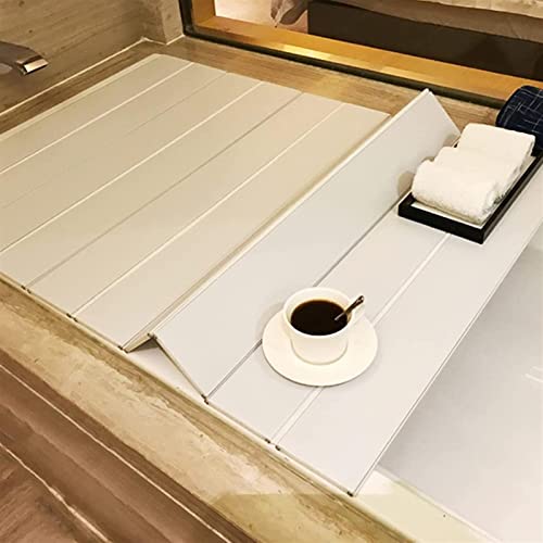 Couverture De Baignoire Pliant Baignoire Couverture Plastique Panneau Anti-poussière Ponts De Baignoire, PVC Protège-poussière Plateau De Baignoire pour Spa, Salle Bain & Douche Pliante (Color : Whit