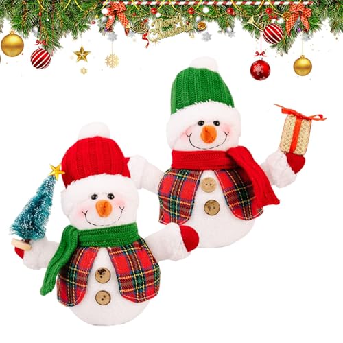 Bonhomme De Neige en Peluche,2 Pièces LED Alimenté par Piles Décor De Noël en Peluche,Décor De Bonhomme De Neige pour Fêtes | pour Plateau Bureau Canapé Étagère Cheminée Chambre