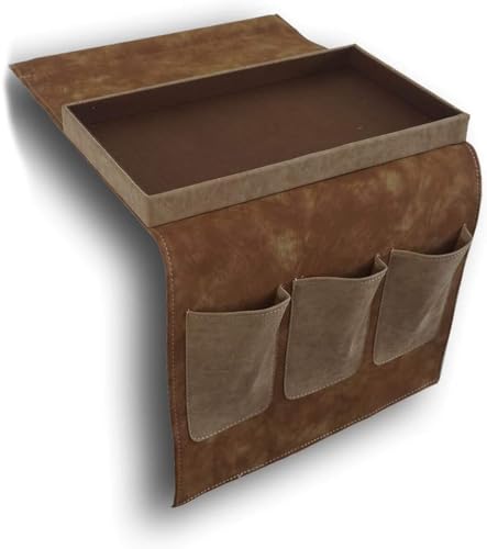 Respicefinem 4 Poches canapé accoudoir TV télécommande Organisateur Fauteuil canapé Sac avec Porte-gobelet Plateau idéal pour canapé inclinable et Chaise Bras dans Le Bureau (Brun)