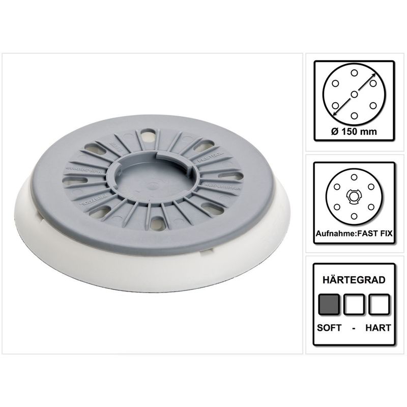 Festool – Plateau de ponçage 150 mm FastFix souple – Pour surfaces bombées et arrondies – Système Multi-Jetstream pour aspiration poussière