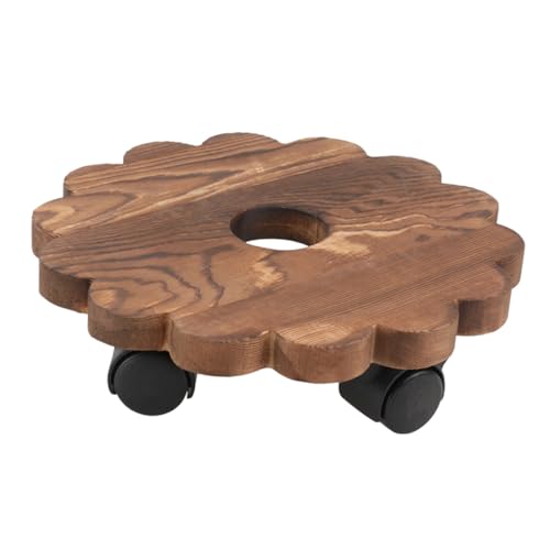 Creative Home Porte Plante a roulettes en Bois Massif | Diamètre 35 cm | Capacité de Charge 80 kg | Support à Roulette Plante | Transport Simple | Support Pot de Fleur | Plateau à roulettes
