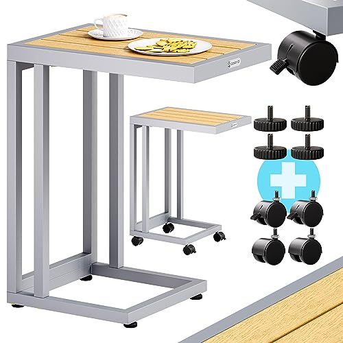 Casaria® Table d'appoint Anthracite en Forme 'C' Plateau en WPC avec roulettes Extérieur Intérieur Salon