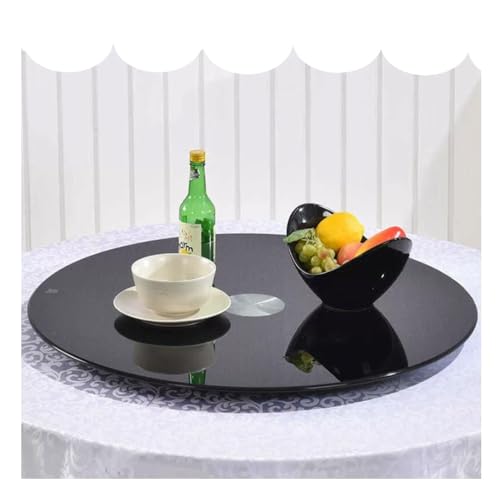MACAGGTNTU 50 60 80cm Lazy Susan Plateau Rotatif en Verre Trempé, Table À Manger Rotative Grand Rond Plateau De Service Noir Dessus De Table Plateau Tournant(20inch(50cm))