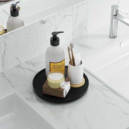 Hanobe Plateau Tournant Bois Rond: Decoratif Bougies Plateaux Rustique Décoratives Plats de Table Vintage Petit Plateau pour Ottoman de Décoration de Comptoir de Cuisine Table