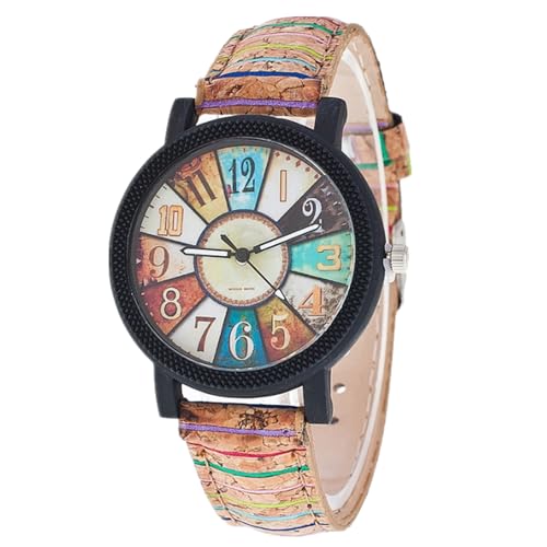 JOATVEE Barre de Couleur de Mode Simple Plateau tournant Grain de Bois Montre pour Femmes Montre en Cuir à Motif de Rayures Vintage Couple Montres à Quartz d’étudiant Masculin et féminin