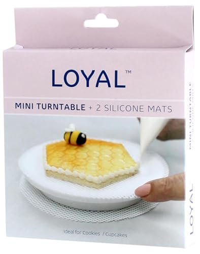 Loyal Mini plateau tournant : plateau rotatif avec 2 tapis en silicone, pour une décoration précise de biscuits et cupcakes, rotation à 360 degrés, design compact et léger, diamètre 12,4 cm