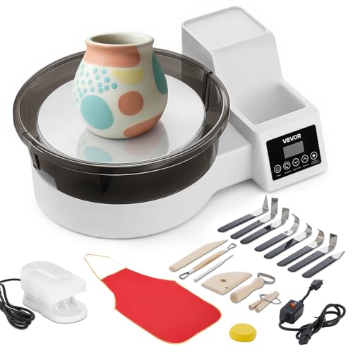 VEVOR Tour de Potier avec Plateau Tournant en Aluminium de 28 cm, Roue de Poterie Électrique 450 W avec Pédale, pour Débutants Loisirs Créatifs en Argile, Vitesse Réglable 30-300 tr/min, Bac Amovible