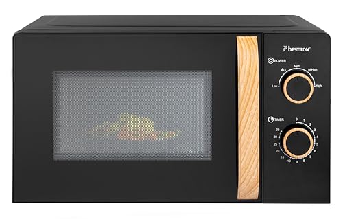 Bestron Four à micro-ondes, 700 W, panneau de commande en deux parties avec 5 niveaux et 35 min. minuterie, réglable en continu, avec plateau tournant de 25,5 cm pour toutes les tailles courantes