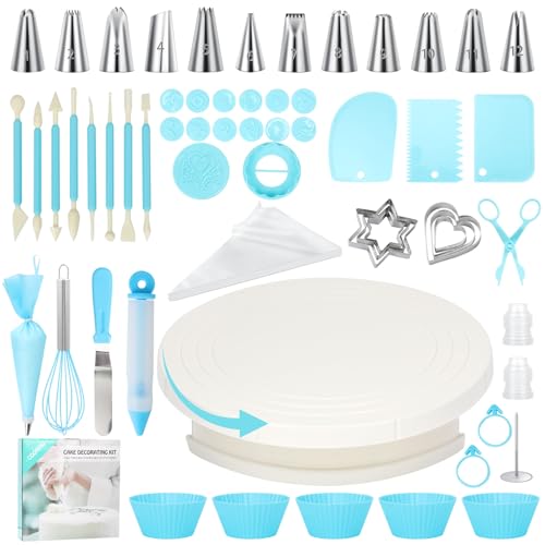 Uten Kit de Pâtisserie, 62pcs Fournitures de DéCoration de GâTeaux avec Plateau Tournant, Poche à Douille, Embouts de Passepoil, Outils de Cuisson, Fournitures de Pâtisserie pour Débutants