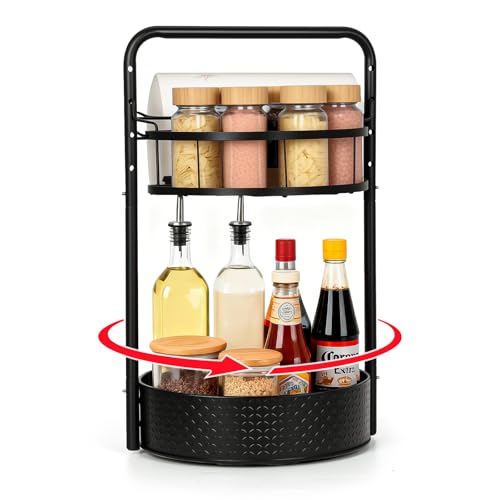 Romon Étagère à épices rotative à 360°, Tourniquet a Epices étages Ajustable Polyvalent Avec Organisateur Placard Cuisine, Porte-Essuie-Tout et Plateau Tournant, pour Bouteilles Hautes et Basses, Noir