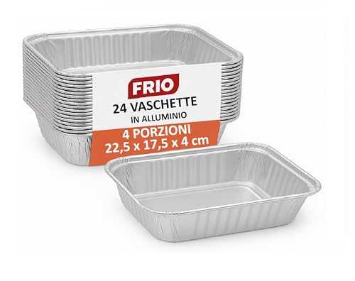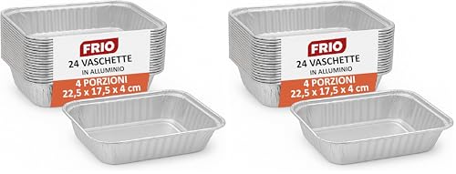 FRIO - 24 Barquettes Aluminium Alimentaires Rectangulaires | 4 Portions 17,5x22,5x5,5 cm | Plateaux, Contenants et Plats Jetables | Four et Congélateur | Idéal Camping, Pique-nique et Vente à Emporter