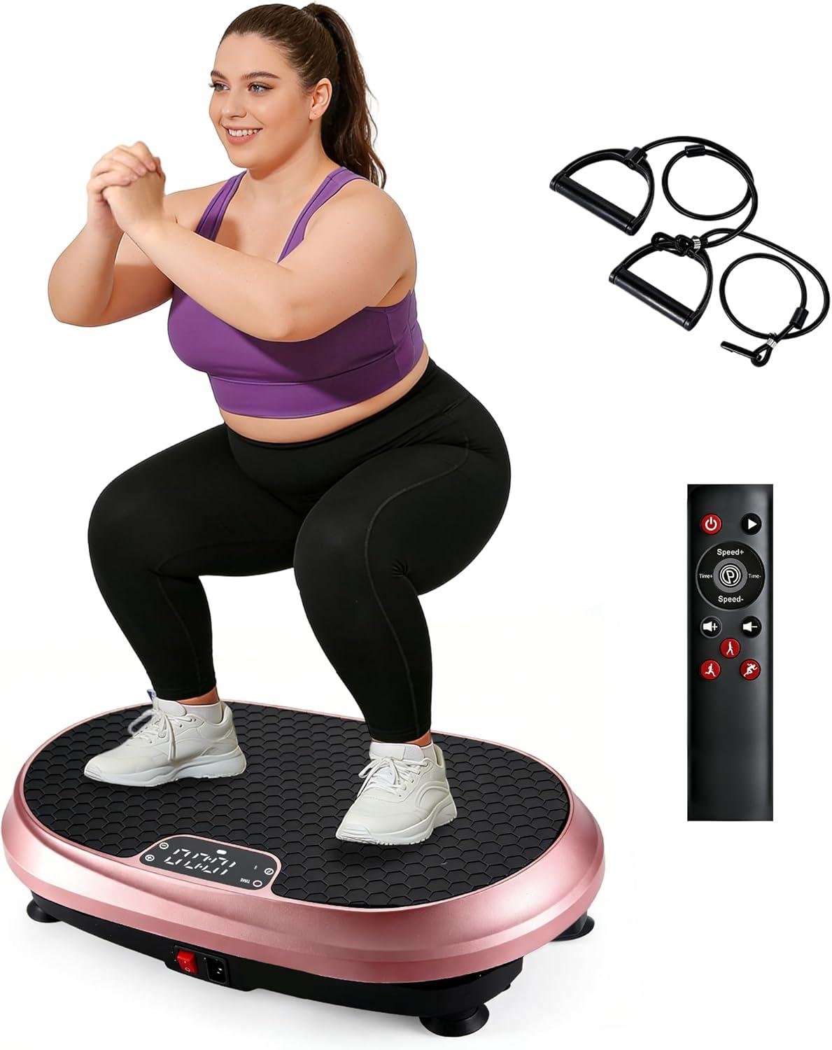 Plateforme Vibrante, Plaque Vibrante Fitness avec 200 Niveaux d'Intensité, 9 Programmes Sport, Haut-Parleur Bluetooth, Télécommande, Bandes et Cordes de Résistance , Écran LED, Capacité de 200 kg