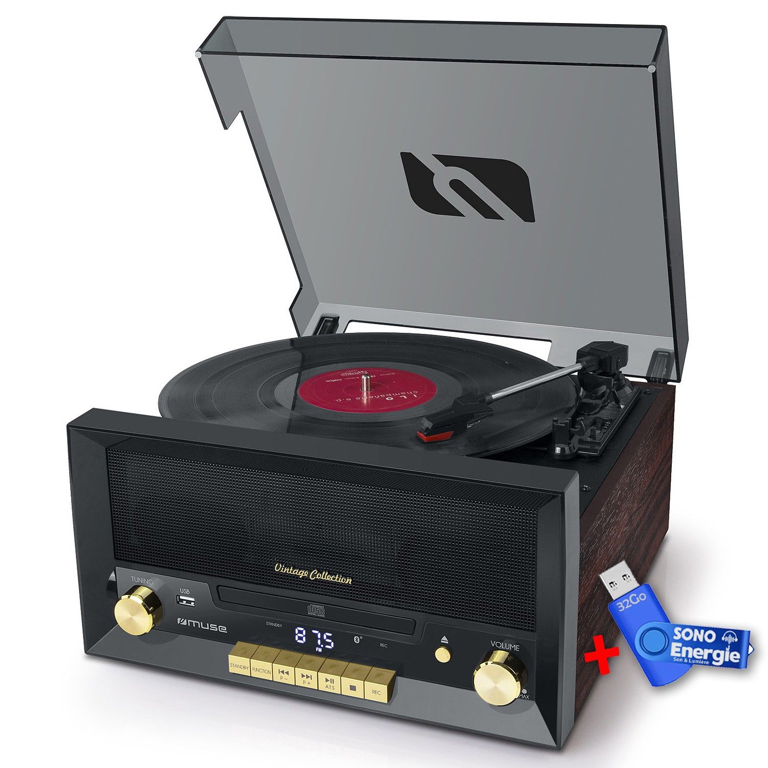 Platine vinyle Muse MT-120 MB avec système CD, Bluetooth, USB, stéréo 3 vitesses 33/45/78 tours+clé USB 32Go