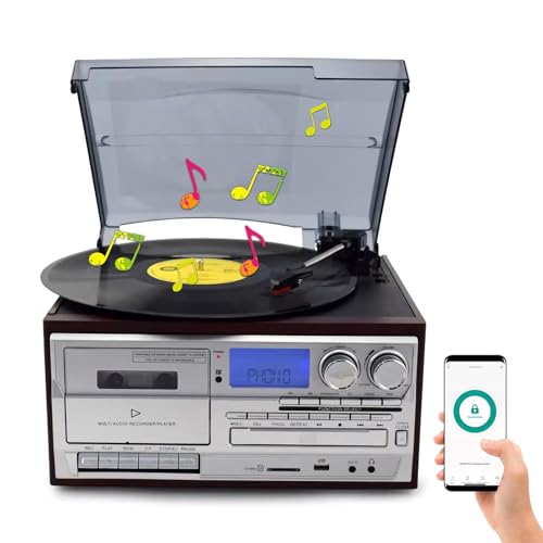 Système Chaîne Hifi CD 20W vintage avec platine Vinyle - CD/FM/USB/AUX - 33/45/78 tours+clé USB 32Go