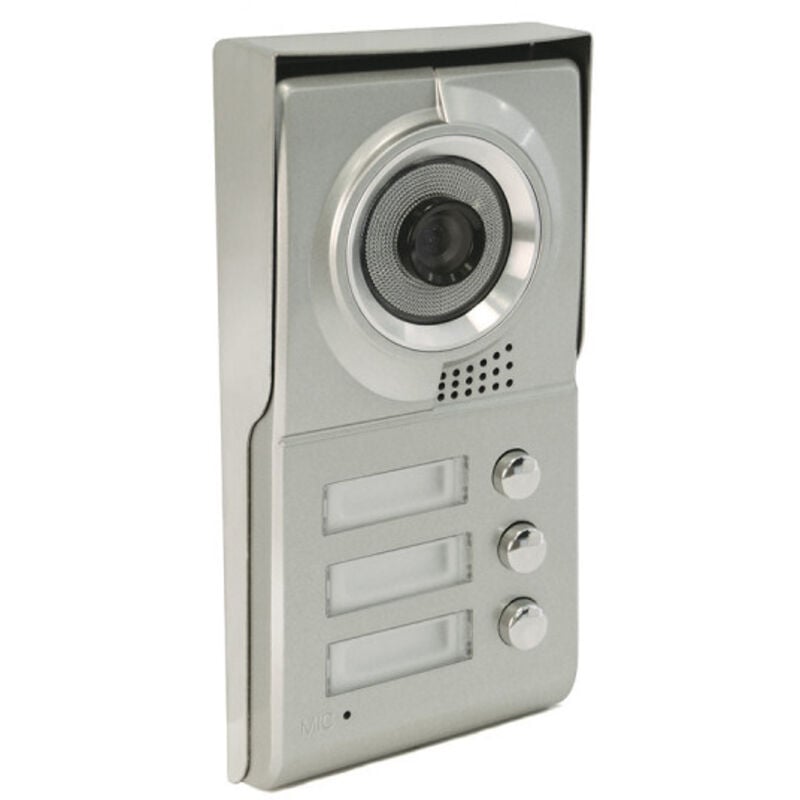 SCS Sentinel - PMP0011 - Platine de Rue 3 Boutons pour Interphone Vidéo Collectif 4 Fils - Pour Petit Immeuble ou Résidence 3 Logements - Façade Alu - Angle de vision 110° - Porte-Étiquette - 3B1