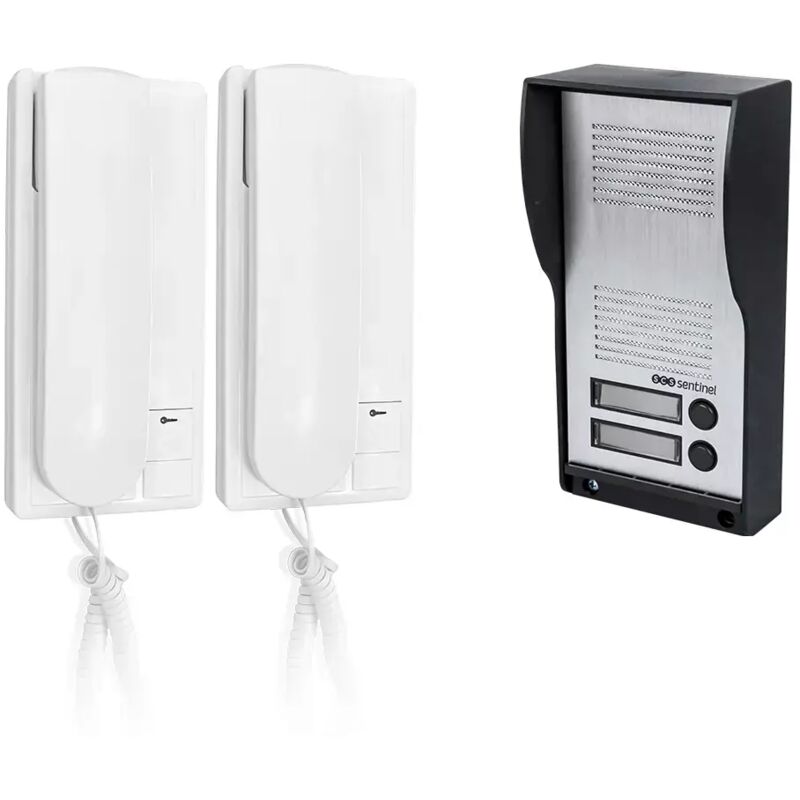 SCS Sentinel, PAF0007, Interphone Audio Filaire 2 Logements, Portier avec Fil de Raccordement, 2 Combinés Intérieurs, 1 Platine de Rue Extérieure, 2 Adaptateurs Secteurs, AudioKit Duo
