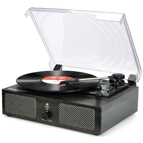Udreamer Platine Vinyle, Tourne-Disque avec Haut-parleurs intégrés et entraînement par Courroie Bluetooth, phonographe Vintage avec 3 Vitesses Bois Noir