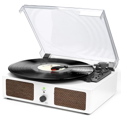 Udreamer Platine Vinyle, Tourne-Disque avec Haut-parleurs intégrés et entraînement par Courroie Bluetooth, phonographe Vintage avec 3 Vitesses Bois Blanc