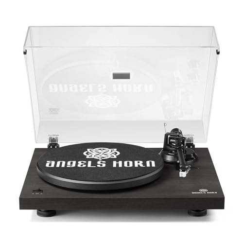 ANGELS HORN Platine Vinyle Bluetooth - Tourne-Disque à 2 Vitesses Haute-Fidélité avec Haut-parleurs Intégrés - Comprend Préampli Phono & Cellule Magnétique AT-3600L - Édition Classique Noir