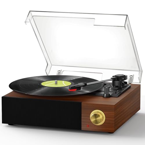 FYDEE Platine Vinyle Bluetooth Portable à 3 Vitesses 33/45/78 TR/Min, Tourne Disque Vinyle Vintage avec 2 StéréoEnceinte Intégrée, Prise 3.5mm, Sortie RCA, Entrée AUX - Noyer