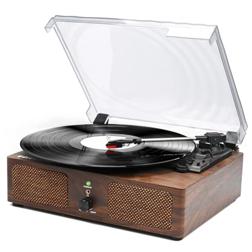 Udreamer Platine Vinyle, Tourne-Disque avec Haut-parleurs intégrés et entraînement par Courroie Bluetooth, phonographe Vintage avec 3 Vitesses Marron
