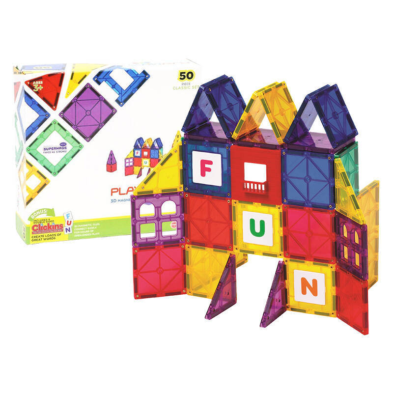 Playmags 3D Blocs Magnétiques pour Les Enfants - en Savoir Formes, Couleurs, et Alphabet STEM Jouets Magnétiques Développer Les Compétences et la Créativité Moteur-Coloré (32 + 6 Set Piece)