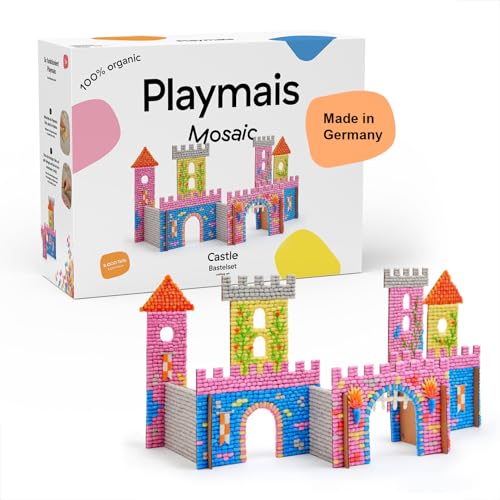 Playmais Mosaic Castle | 8000 pièces | Kit de bricolage | Jouet naturel | avec éponge, 14 cartons prédécoupés | Végétalien, responsable et sûr | À partir de 5 ans