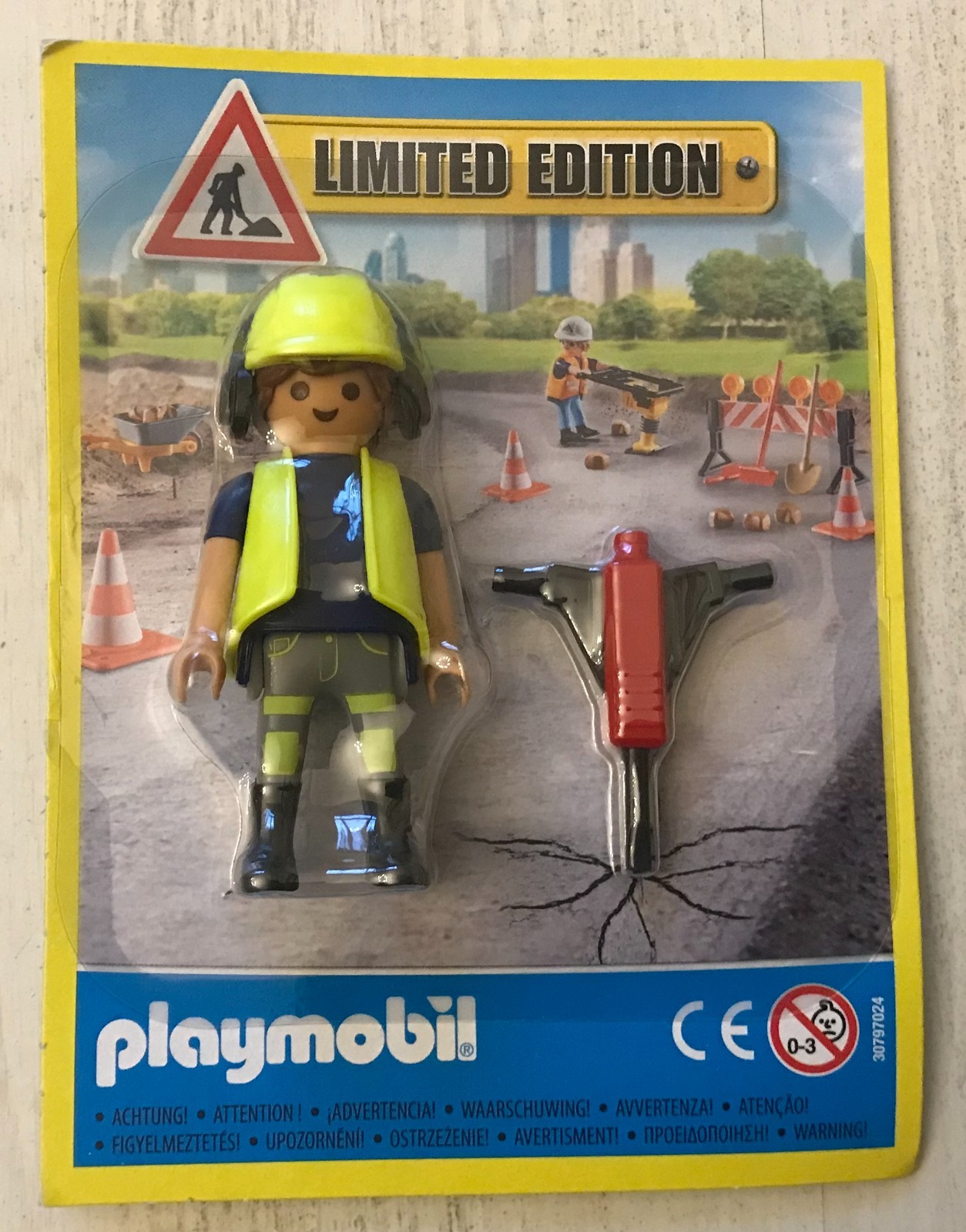 FIGURINE NEUF SOUS BLISTER PLAYMOBIL OUVRIER DE CHANTIER ET MARTEAU PIQUEUR V3