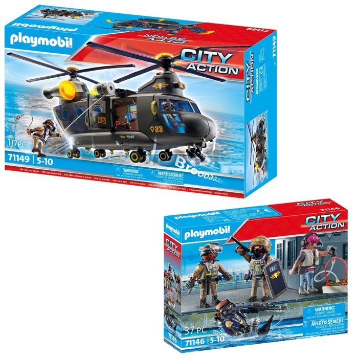 Playmobil pack hélicoptère Police Hélicoptère de transport (71149) + Equipe des forces spéciales (71146)