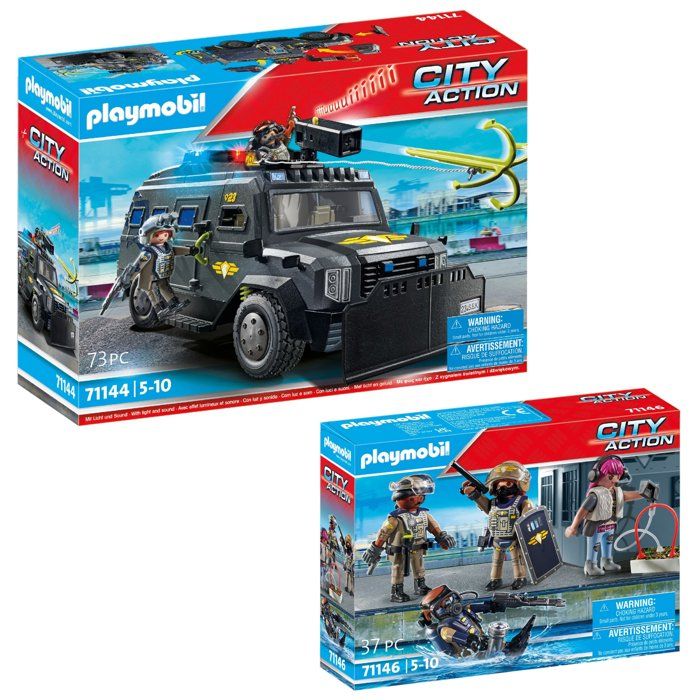 Playmobil pack Police Véhicule dintervention (71144) + Equipe des forces spéciales (71146)