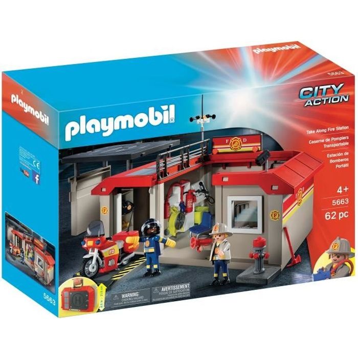 PLAYMOBIL - Caserne de Pompiers Transportable - Les pompiers - Plastique - Mixte