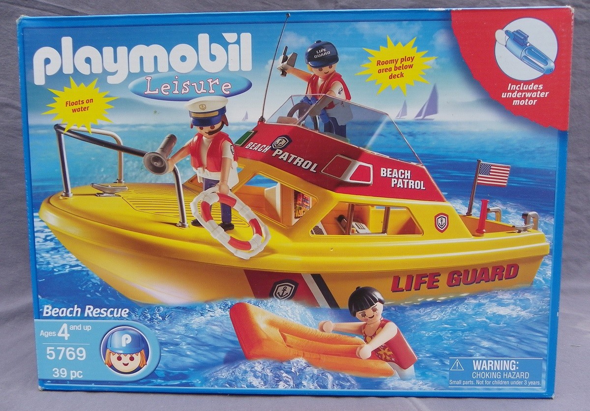 PLAYMOBIL USA 5769 BATEAU Navire sauvetage côtier bouée océan plage BOITE NEUVE