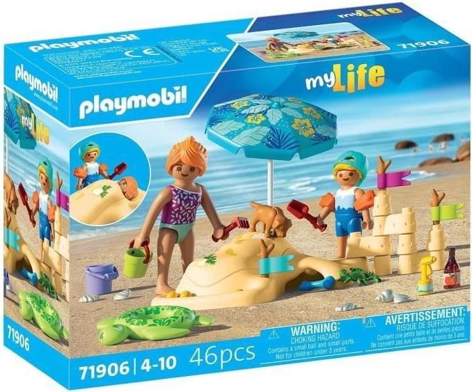 PLAYMOBIL 71906 Famille jouant dans le sable a la plage, My Life Vacances a la plage, 46 pieces, des 4 ans