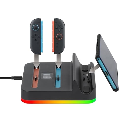 Konix Station de rechargement dock console + 2 manettes Nintendo Switch 2 - Éclariage LED RVB personnalisable - Compatible PlayStation Portal - Noir