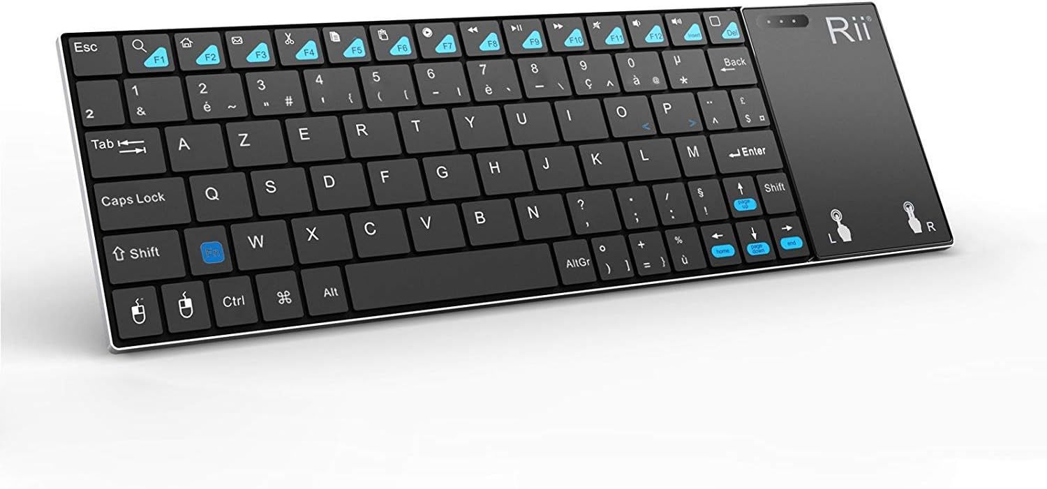Rii Mini Clavier 2.4GHz sans Fil AZERTY (Version française) avec Grande Taille Touchpad pour Smart TV,HTPC,TV Box,Raspberry PI, Mac OS,Linux,Android,Windows 2000 XP Vista 78,Sony PlayStation 3