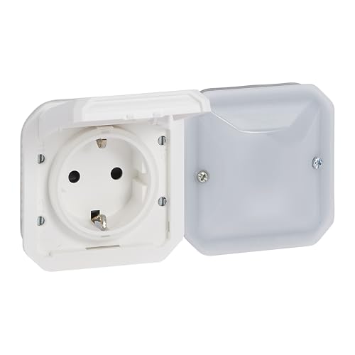 LEGRAND, Plexo New 069784L Prise de courant pour pièces humides, charge depuis les vélos électriques et les deux-roues électriques, norme Schuko, connexion automatique, avec couvercle rabattable et