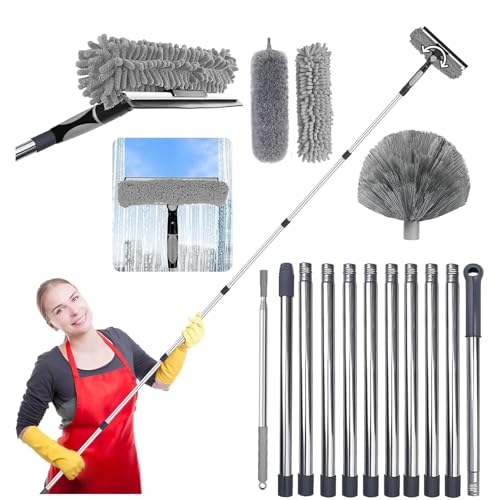 Kit De Dépoussiérage Haute Portée De De 2.5m avec Perche D'extension De 0.4 À 2.5m Plumeau en Toile D'araignée avec Perche Télescopique, pour Ventilateur De Plafond, Fenêtres (Gris)